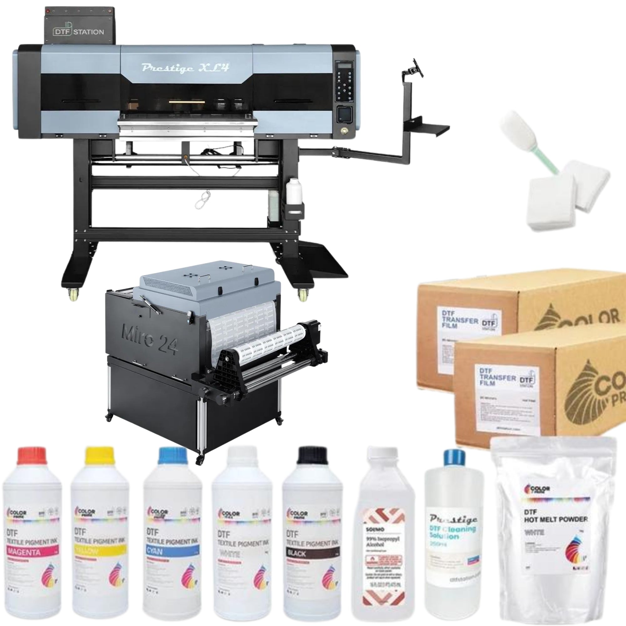 The DTF Station promo page on Absolute Toner showcases a range of advanced Direct-to-Film (DTF) printing solutions designed for vibrant, durable, and versatile textile customization. Featuring products like the Prestige XL4, A3, and A4 DTF printers, alongside complementary equipment such as the Seismo L24R powder shaker and UV DTF printers, the collection caters to businesses and creatives seeking high-quality apparel and merchandise personalization. These printers support a variety of fabrics, including cotton, polyester, and blends, enabling intricate designs with exceptional color vibrancy and detail, ideal for t-shirts, hoodies, and promotional items. The page emphasizes the technology’s efficiency, allowing for fast production and cost-effective short runs, making it a game-changer for small businesses and high-volume operations alike.