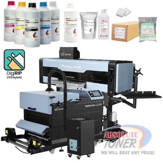 Absolute Toner New Prestige XL4 DTF Shaker Bundle Including Prestige XL4 DTF 24" Inch Printer & Seismo L24R DTF Powder Shaker Dryer with Starter Supply Package DTF printer