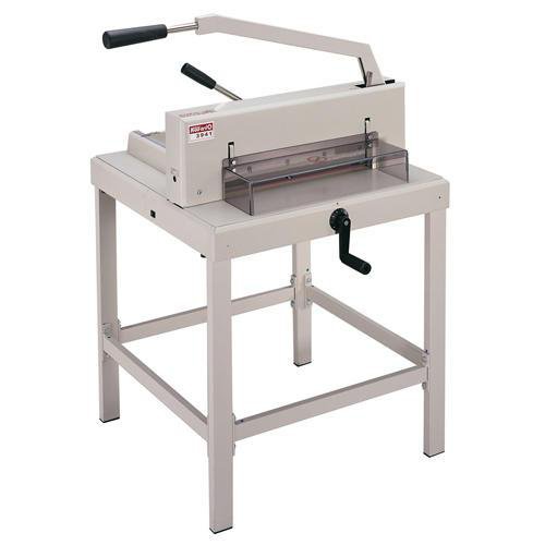 This manual office guillotine is perfect for cutting and trimming the paper stack up to 55 mm height. The machine equipped with the fast flick clamp, spindle guided backgauge, side gauge with measuring scale, fine adjustment with the calibrated backgauge hand crank, front safety guard and knife locked in upper position is ideal for school and office use.