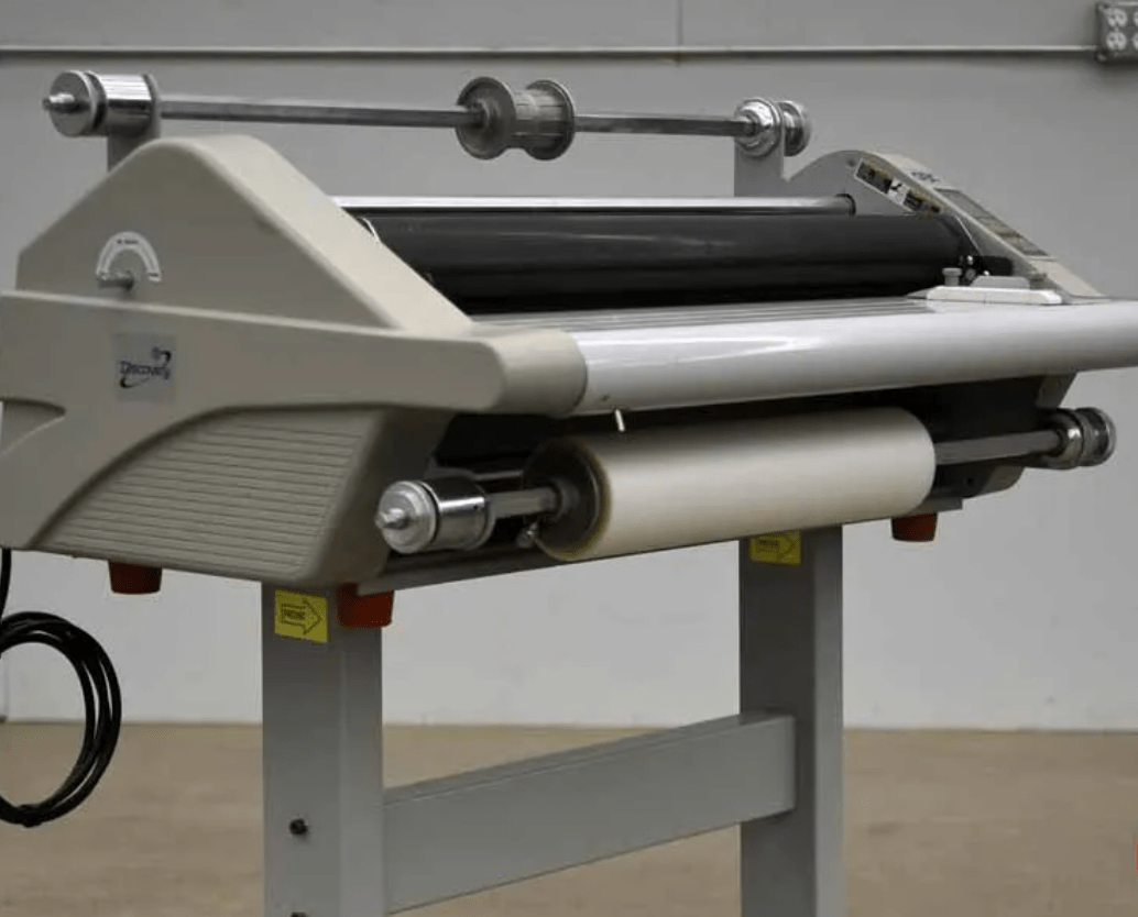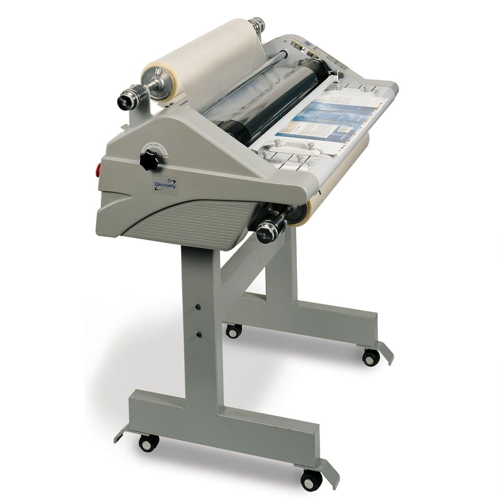 Laminate at amazing speeds with GBC Discovery 80 High Speed 31" Laminator. The laminator is designed to meet the needs of commercial printing and in-house production environments. It can laminate at speeds of up to 20' per minute or four times faster than most office laminators. It can accommodate posters up to 31" wide or two-up 12" x 18" sheets and handles roll up to 2000 feet for continuous operation. Crowned rollers and infrared heating systems ensure consistent professional-level output is maintained even at-8 higher speeds. An easy-to-read LCD panel displays temperature, speed, job settings, and ready and wait-for controls. Memory function conveniently saves and recalls up to nine different set-up positions for speed and temperature.