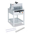 With the MBM Triumph™ 4815 semi-automatic cutter, you get the same world-renowned ease-of-use, power and precision as the Triumph™ 4315 cutter, but with double the cutting capacity, as it can power through an astounding 3" thick stack. The 4815 paper cutter can cut media up to 18 ⅝" wide, and is mounted onto a sturdy and convenient stand that sits comfortably at 37" high, and includes a shelf for accessory and paper storage. As with all MBM Triumph™ cutters, the 4815 features the comprehensive SCS™ safety system that provides more protection for your operators than any other cutter safety package. To use, simply place your stack of paper into the cutter opening and rotate the calibrated hand crank on the front to adjust the back gauge. Use the LED cutting line and cm/in display screen to set the back gauge into your desired location. Use the wheel on top to depress the clamping mechanism against your stack. The blade itself is then activated when the user presses both of the cut bars at the same time. It is that simple - there are no confusing settings or adjustments needed. When you buy the MBM Triumph™ 4815 semi-automatic electric paper cutter online, you also have the security and safety measure of a key-activated power switch, so only authorized users are allowed access to the machine. Included free with your purchase is one standard cutting stick, one high quality German steel blade (replacement blades available), an easy-access tool holder and a jogging block tool to help you square your stack prior to cutting.