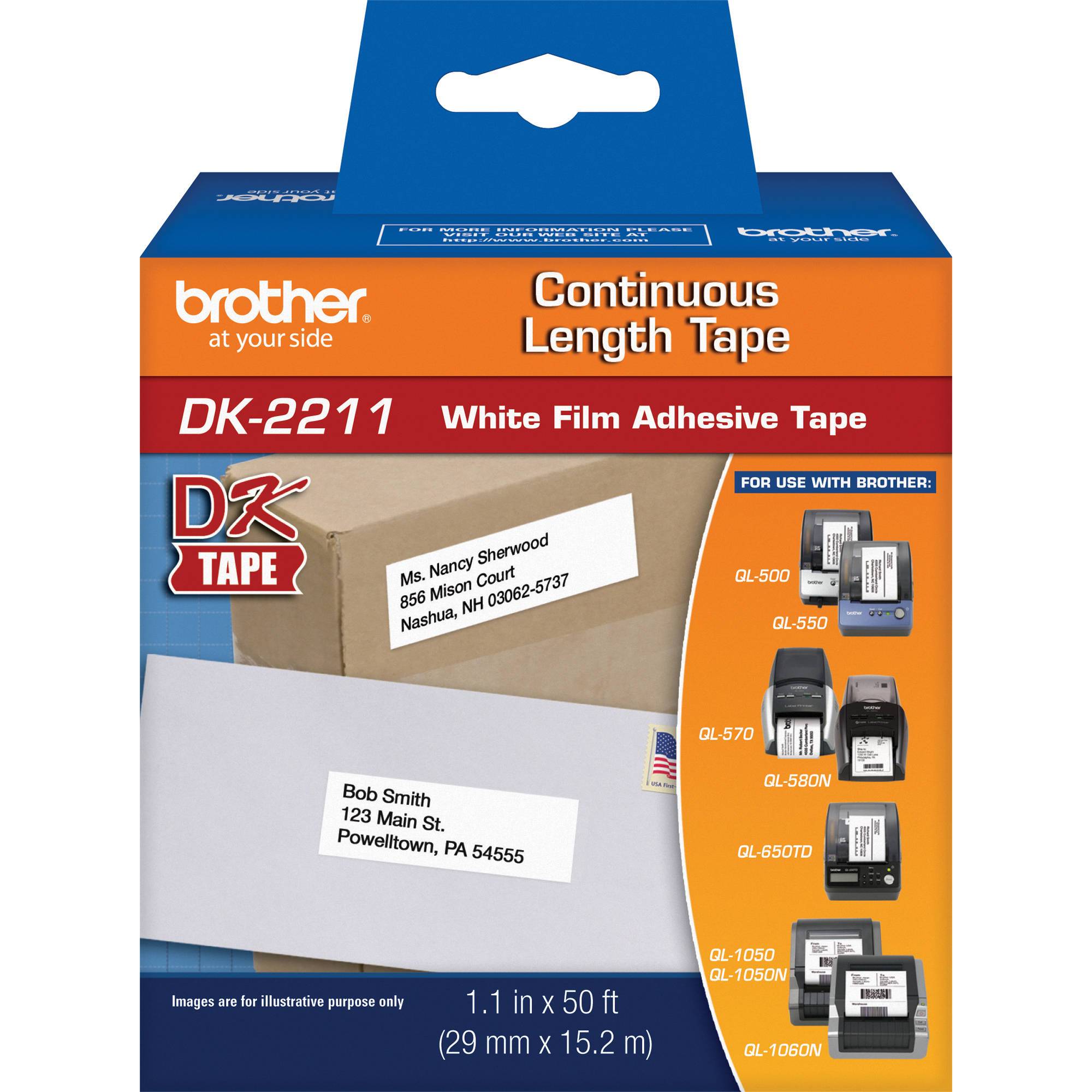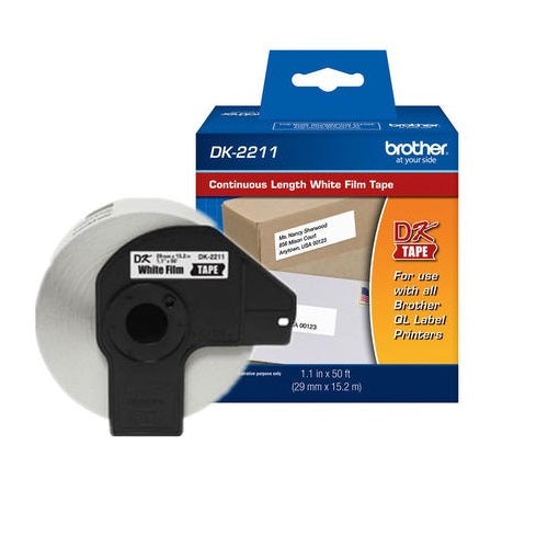 The Brother DK2211 is a roll of continuous length white label tape designed for use in direct thermal printers. Labels printed on the DK2211 will have black text and graphics on a white background. The DK 2211 is 1.1” wide by 50 ft. long. Compatible with: Brother™ QL-1050, Brother QL-1050N, Brother™ QL-1060N, Brother™ QL-500, Brother™ QL-550, Brother™ QL-570, Brother™ QL-570VM, Brother™ QL-580N, Brother™ QL-650TDBrother™ QL-700, Brother™ QL-710W, Brother™ QL-720NW.