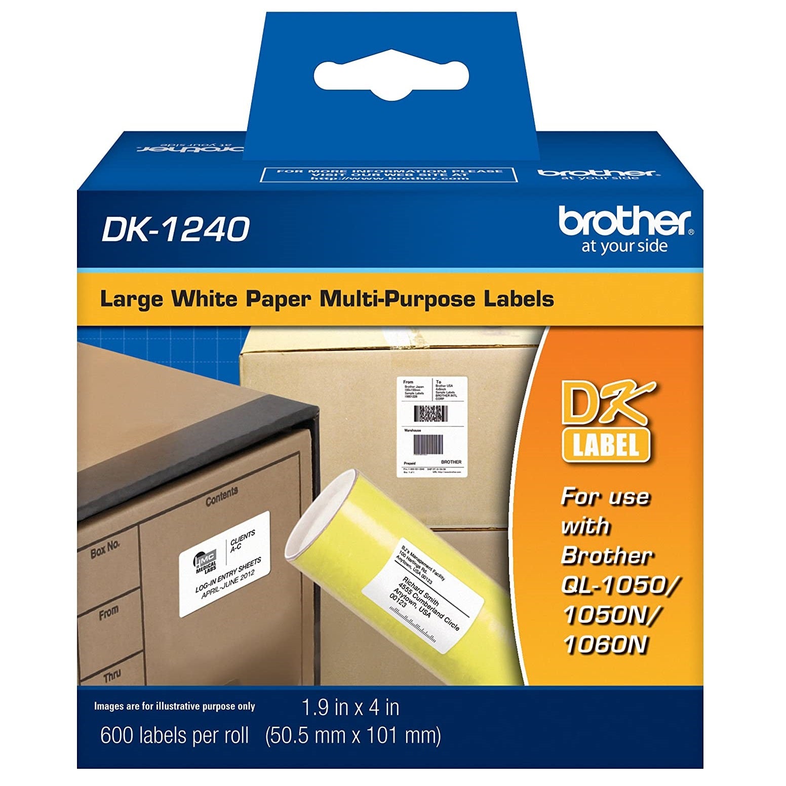 These DK1240 large White labels are designed for specific brother QL label prints, so be sure to check your label printer number to ensure compatibility. With 600 labels per pack, you'll have all the tools you need to effortlessly print crisp, clear labels for a variety of uses. When you need large, easy-to-read labels that suit a variety of applications, choose Brother Genuine DK-1240 Die-Cut Large Multi-Purpose White Paper Labels for Brother QL Label Printers. Use them in a wide range of projects including for shipping and organizing, and you can feel confident that your labels will stick strong without peeling or fading