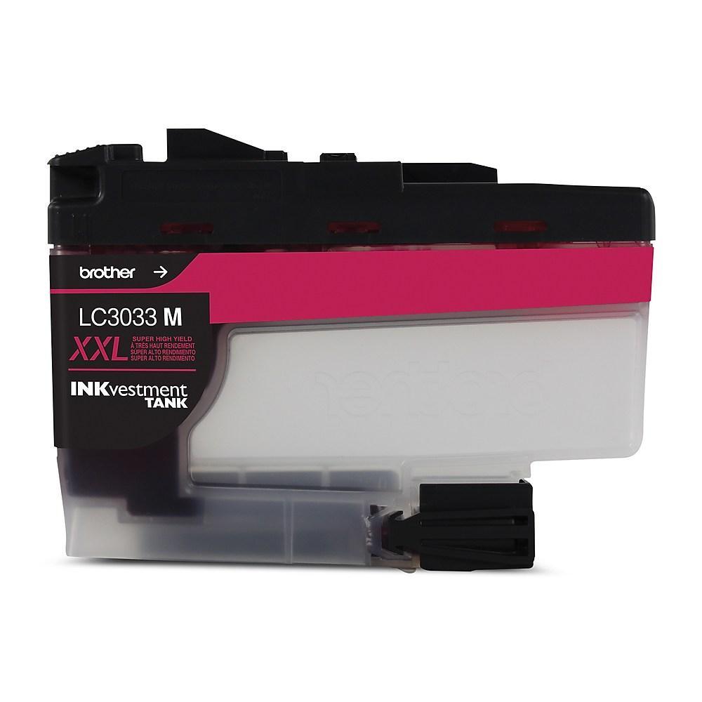 Brother LC3033MS magenta ink cartridge. use Brother inkjet printers for superior results. This ink tank cartridge boasts a simple design for hassle-free installation. Brother INKvestment super high yield cyan tank ink cartridge provides very good performance with every press of the print button. Brother ink produces a sharp, perfect print. Cartridge for use in Brother Printers MFC-J995DW and MFC-J995DWXL Yields up to 15,000 pages.