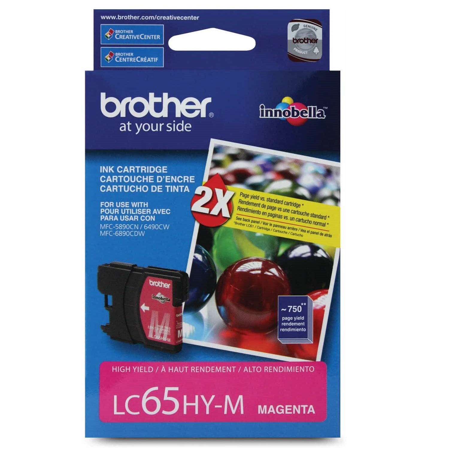 Original Brother Cartridges: LC65HYMS Ink Cartridge is a genuine cartridge for your Brother Printer. These LC65HYM Brother ink cartridges are specially designed for use work with MFC-5890CN, MFC-5895cw, MFC-6490CW, MFC-6890CDW. Designed to use ink effectively, saving money between cartridges. This Brother high-yield ink cartridge works with select Brother printers for easy installation. Brother LC65HYM cartridge yield approx. 750 pages, providing an ideal option for small offices, and the rich magenta ink resists fading.