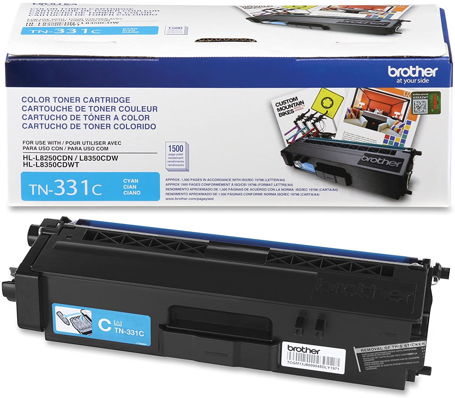 Original Brother Cartridge: Brother TN-331 Cyan toner cartridge (TN331C). This replacement toner cartridge provides a consistent flow onto the page for quality, colorful finish that looks great for clients and helps keep legible records. Brother TN331C cartridge works with HL-L8250CDN, HL-L8350CDW, HL-L8350CDWT, MFC-L8600CDW, MFC-L8850CDW. This Genuine toner produces rich, color prints that withstand the test of time. Brother Genuine OEM TN-331 toner cartridge yields approx 1500 pages.