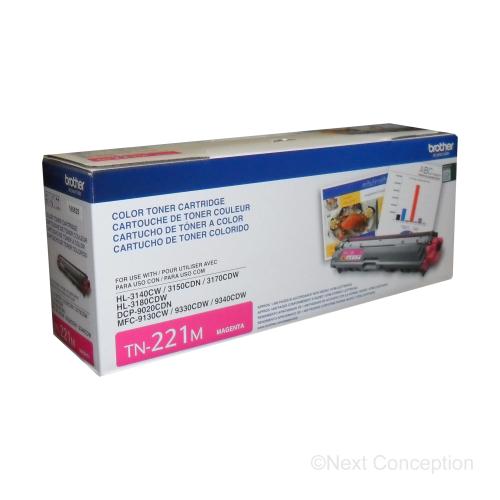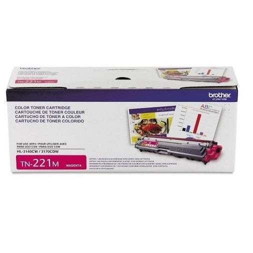 Brother Genuine TN221M Magenta Yield Toner Cartridge. It provides color prints in high-quality, rich, vivid laser prints that you can rely on for up to 1,400 pages. Brother Genuine TN-221M is for use with Brother laser printers and all-in-ones: HL-3140CW, HL-3170CDW, HL-3180CDW, MFC-9130CW, MFC-9330CDW, and MFC-9340CDW