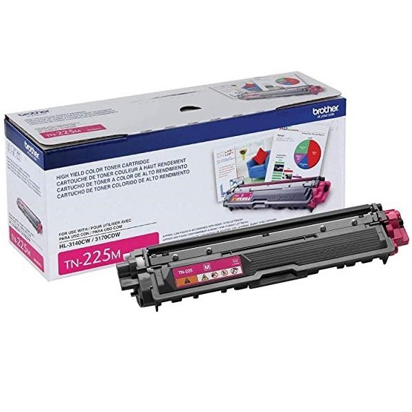 Brother Genuine TN225M high yield magenta toner cartridge. TN-225M provides high-quality, rich, vivid laser prints that you can rely on for up to 2200 pages. Brother Genuine toner is intelligently engineered as part of a complete printing system to work with your Brother printer for optimum results delivering superior print quality.