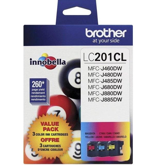 Create high-quality reports, contracts, and other papers by using this 3-pack of color ink cartridges. Made to work effortlessly with select Brother inkjet printers, these cartridges are easy to install and make printing simple and convenient. This Brother LC2013PKS ink cartridge 3-pack has a yield of up to 260 pages each and features cyan, magenta, and yellow inks, providing a variety of vivid, rich color options.