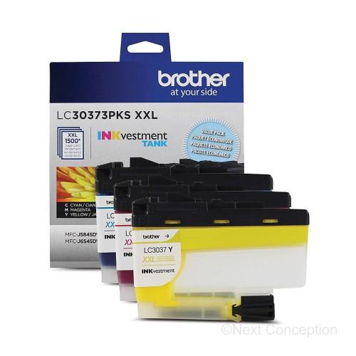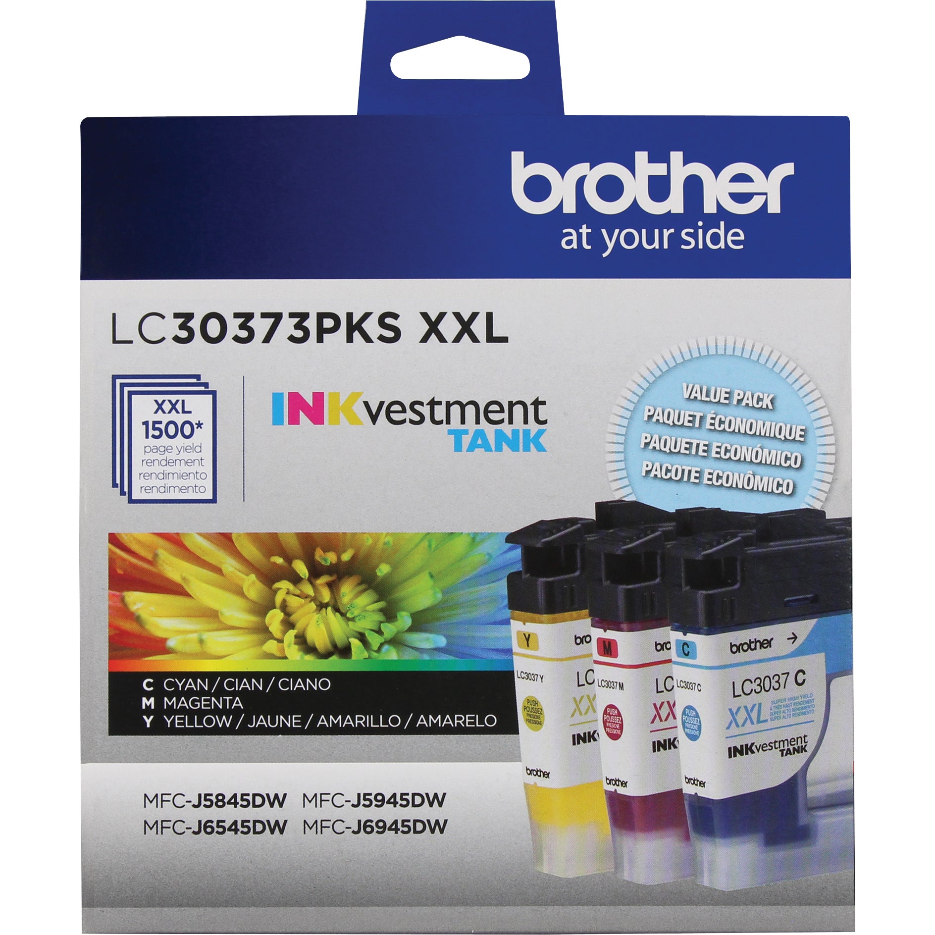 Original Brother Cartridge: Brother LC30373PKSÂ high yield is an Inkvestment tank ink cartridge. This Brother ink cartridge use with MFC-J5845DW, MFC-J5845DW XL, MFC-J5945DW, MFC-J6545DW, MFC-J6545DW XL, and MFC-J6945DW. This product 1 cartridge each of cyan, magenta, and yellow ink cartridge and yields approx. 15,000 pages.
