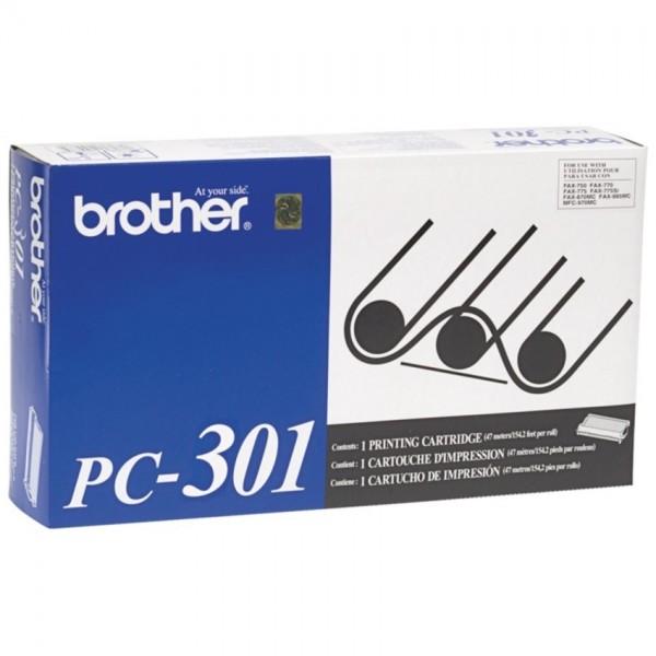 Original Brother PC-301 fax ribbon is used in selected Brother Fax Machines which use thermal printing technology. Thermal printing is a method of printing on plain paper where heat is applied to the fax film transferring the image. This is especially useful as the resulting prints are not affected by heat or fading, making them highly suitable for archiving, and are smudge-resistant so you can use highlighters or pens on them. This pack contains a cartridge containing a preloaded roll, so it's easy to replace. You can also buy separate refill rolls. Ensure the best results from your Brother, use genuine Brother Consumables.Â