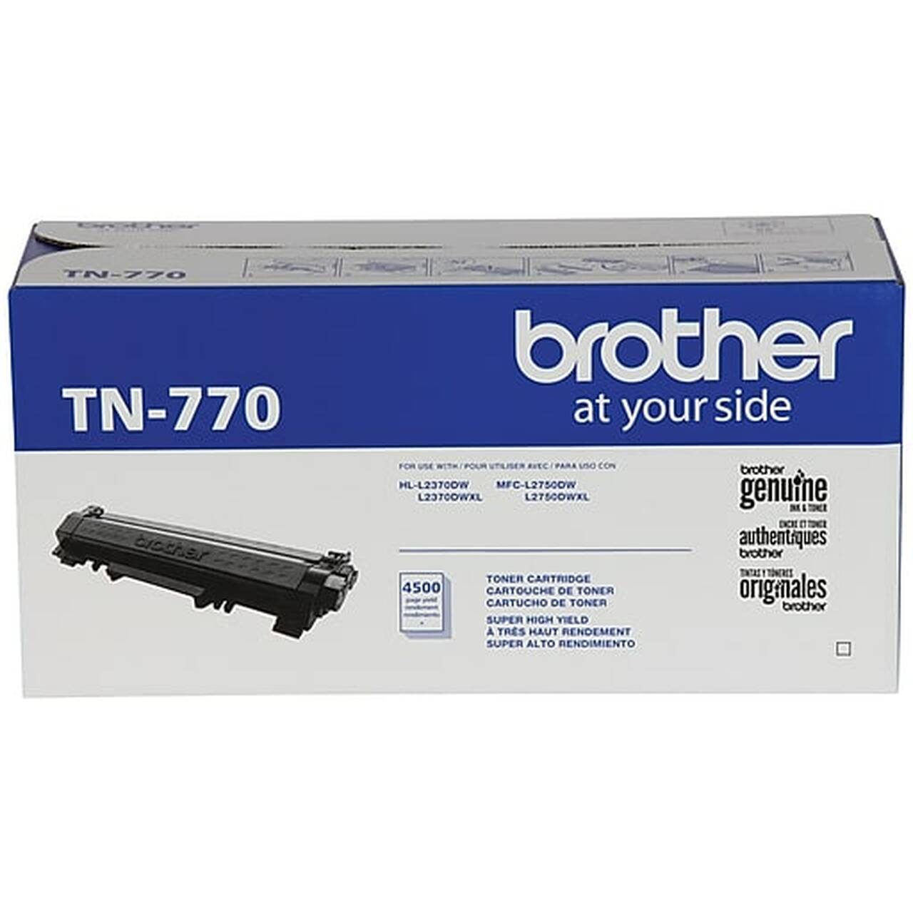 Brother Genuine toner is intelligently engineered as part of a complete printing system to work with your Brother laser printer for optimum results delivering superior print quality. For use with Brother monolaser printer models: HL-L2370DW, HL-L2370DW XL, MFC-L2750DW, MFC-L2750DW XL. Brother Genuine TN770 provides high-quality, sharp laser prints that you can consistently rely on for up to 4,500 pages.
