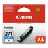 Canon CLI271XL 0337C001 Cyan Ink- Deliver legible text and sharp graphics with this Cyan ink tank. Effortless to install in select PIXMA printers, this tank features a smart LED to monitor ink levels for replacement. This Canon CLI-271 XL Cyan ink tank is a genuine Canon part.Â