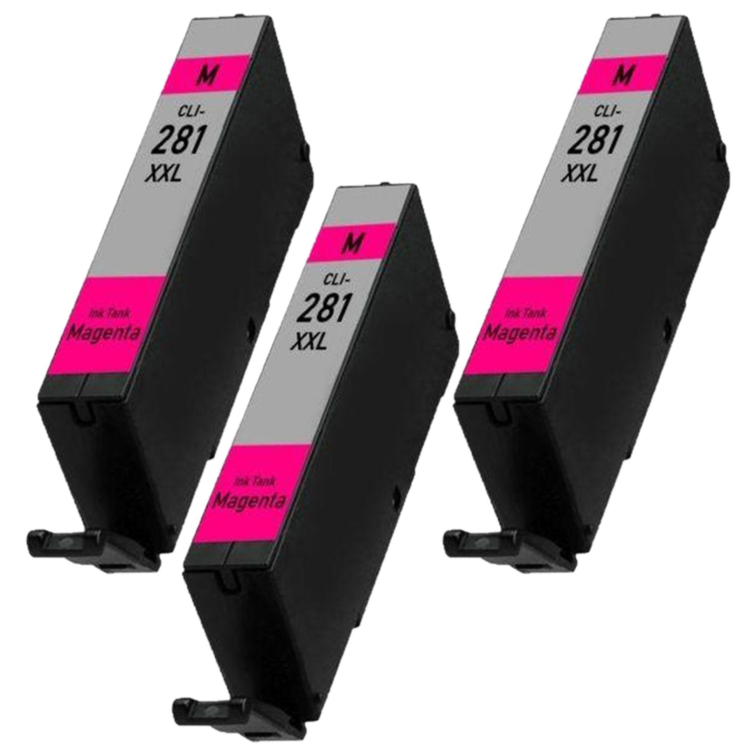 The Compatible Canon CLI-281XXL Ink Cartridge Magenta Super High-Yield works safely with a number of Canon PIXMA printers. This Compatible Canon CLI-281XXL Magenta High Yield ink cartridge provides beautiful prints every time. Compatible CLI-281XXL cartridge for use Canon - PIXMA TS8120, TS6120, TR7520, TR8520, TS9120, TR7820. The Canon CLI-281XXL produces 780 pages based on 5% page coverage.