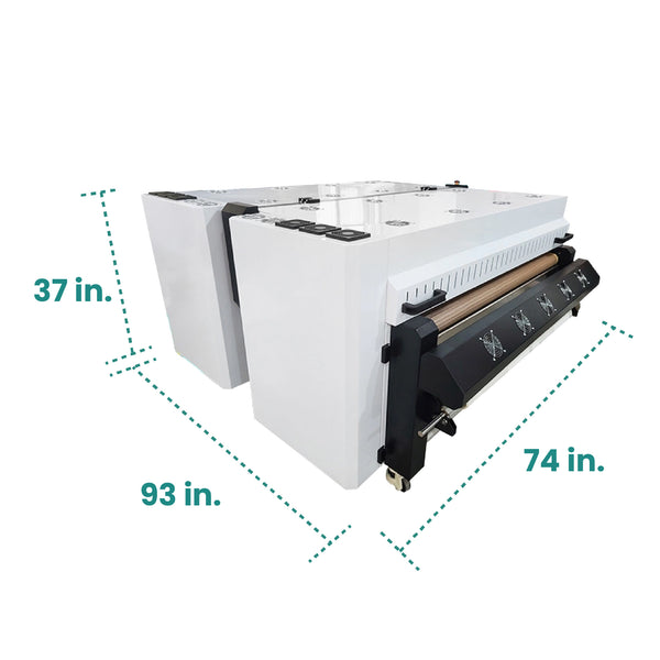 The Seismo A51 DTF Powder Applicator and Dryer unit can cure DTF rolls up to 51 inches wide and is compatible with all roll to roll Direct to Film printers. It has 220 volts, 28 amps, and hardwire (Please communicate with your electrician to install this)