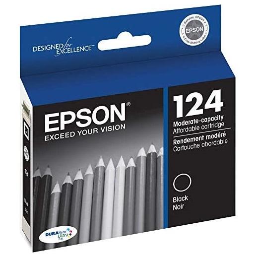 This Epson 124 durabrite black ink cartridge is sold individually and is compatible with select Epson photo printers and laser printers for versatility.