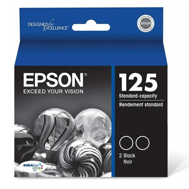 This Epson 125 dual black ink cartridge is sold individually and is compatible with select Epson photo printers and laser printers for versatility.