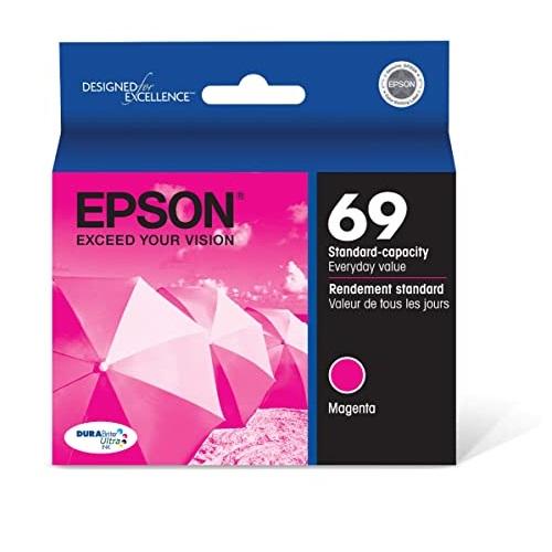 This original Epson T069320S OEM ink cartridge is the genuine cartridge made by Epson. The goal of the original Epson T069320S OEM ink cartridge is to offer the ultimate printing experience. The ink in this cartridge dries almost instantly, preventing smears and smudges and keeping prints looking clean and neat every time. This Epson 69 black ink magenta cartridge is sold individually and is compatible with select Epson photo printers and laser printers for versatility.