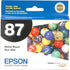 This Epson 87 matte black ink cartridge is sold individually and is compatible with select Epson photo printers and laser printers for versatility.