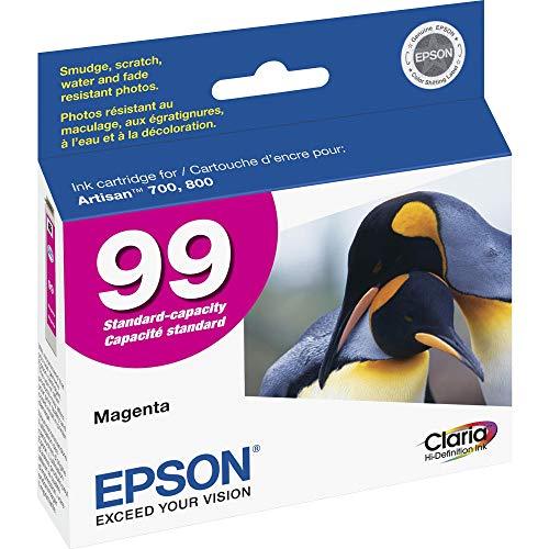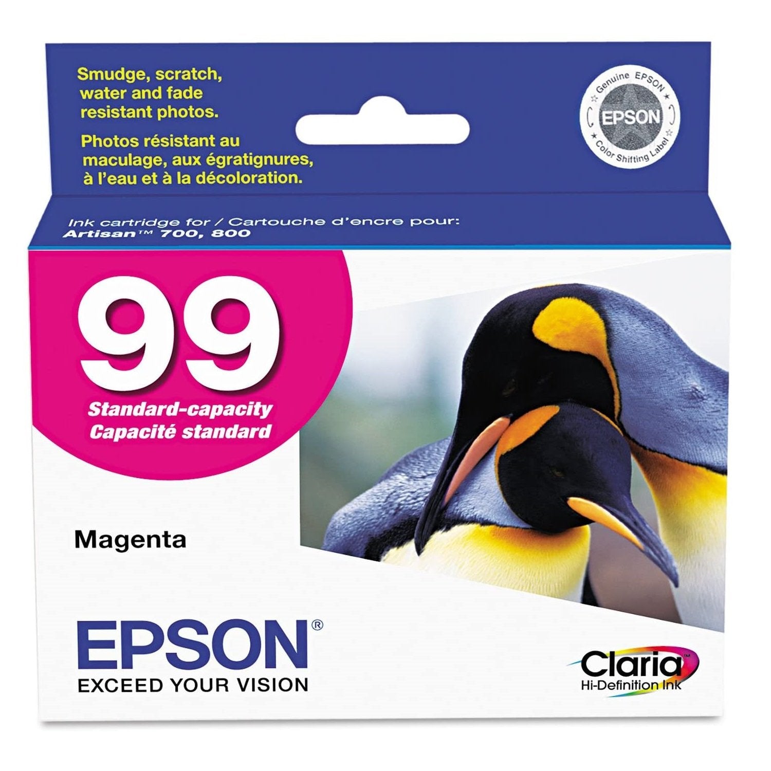 This Epson 99 magenta ink cartridge is sold individually and is compatible with select Epson photo printers and laser printers for versatility.