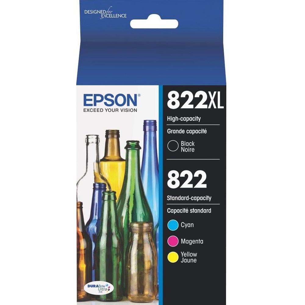 Epson T822XL-BCS/822 Black High Yield and Cyan/Magenta/Yellow Original Genuine OEM Ink Cartridges, 4/Pack