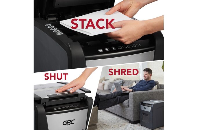 Spend less time shredding and more time on other tasks. GBC AutoFeed+ Shredders take the manual work out of shredding to make your day easier. Simply stack, shut and walk away!