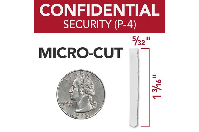- Micro-cut (P-4) shred style safely shreds confidential or sensitive documents