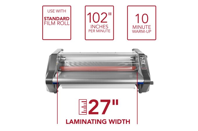 - Provides both thermal lamination and mounting applications for a wide range of projects up to 27" wide, including posters, signage, maps, POP displays and more