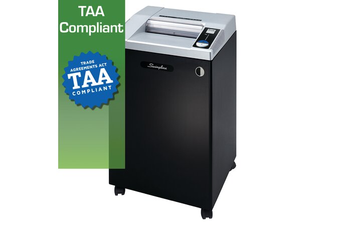 - Hardworking TAA Compliant shredder is designed to cover everyday security needs for large groups. Cross-cut shredder provides P-3 Level Security for everyday shredding.
