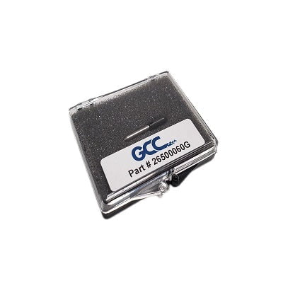 This GCC Black Cap blade for RX/Jaguar IV/Puma III/Expert series and features a 50-degree angle at a 2.0 mm diameter. This blade is suitable for cutting intricate designs, providing small details, and cutting small text.