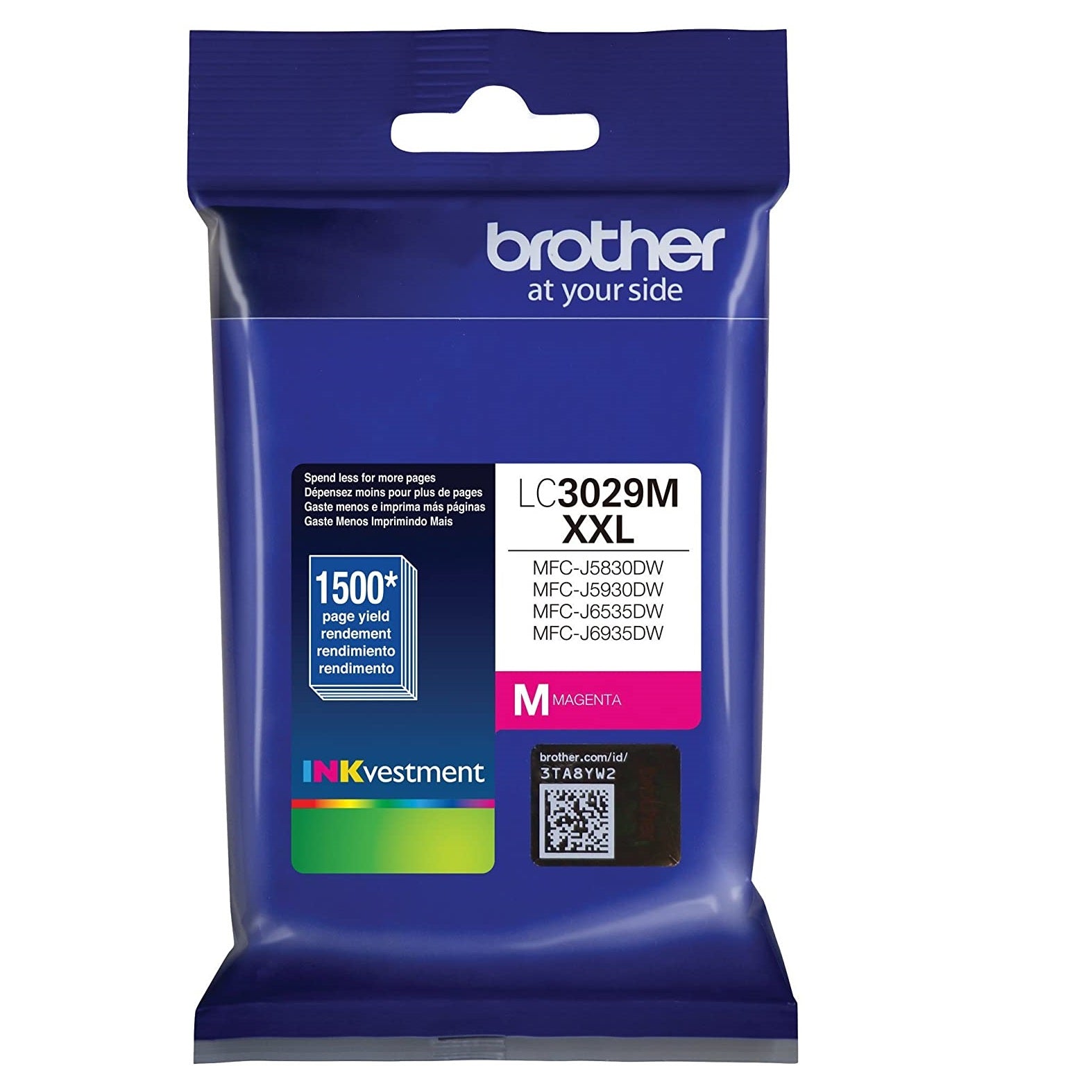 Brother LC3029M High Yield INKvestment Magenta Ink Cartridge is a genuine cartridge for your Brother Printer. Brother inks use Genuine ink technology which is not only fade-resistant but also colourfast, providing high-quality print that has more vivid colours and better definition.  LC3029M Brother ink cartridge is designed for use work with MFC-J5830DW, MFC-J5830DW XL, MFC-J5930DW, MFC-J6535DW, MFC-J6535DW XL, MFC-J6935DW. Produce archival-quality documents with this long-lasting ink cartridge. saving money between cartridges. This Brother LC3029M high-yield ink cartridge yield up to 1500 pages.