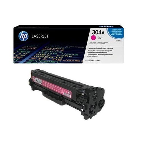 HP 304A (CC533A) toner cartridge is a genuine cartridge for HP printers. This Original HP 304A CC533A Magenta Laserjet Toner Cartridge is designed to work with HP Color LaserJet CM2320fxi, Color LaserJet CM2320n, Color LaserJet CM2320nf, Color LaserJet CP2025dn, Color LaserJet CP2025n, Color LaserJet CP2025x printer models. By using the Original/OEM HP 304A CC533A Laserjet Toner Cartridge you will always get clear, sharp text and graphics. The 304A CC533A cartridge yields up to 2,800 Pages.Â