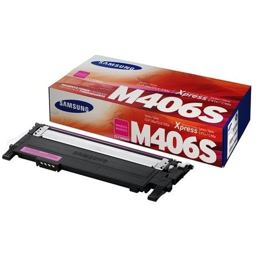 This Samsung CLT-M406S Magenta Toner Cartridge for the Xpress SL-C410W, SL-C460FW, and SL-C460W Series provides crisp details and vibrant print output. Use this magenta toner cartridge to produce vivid prints. The simple-to-install design lets you insert this toner cartridge into select Samsung all-in-one machines and laser printers easily, while the magenta toner resists smudging and helps text and images stand out sharply for easy reading. This Samsung 406 toner cartridge has a page yield of up to 1,000 pages, making it a strong choice for small-to-medium-size offices.