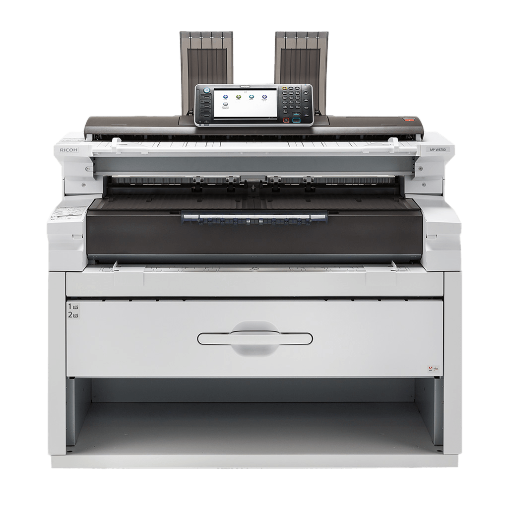 Designed with users in mind The RICOH MP W6700SP offers a robust feature set steeped in innovation, usability and simplicity. The system was created to fit seamlessly into the workspaces and wide format workflows of architectural, engineering and construction firms, pay-for-print environments, utilities and telecommunications companies, government offices and manufacturing workgroups. This wide-format workhorse performs in the tightest of spaces and in the most convenient of places, always mindful of its footprint and environmental impact. In fact, it was specifically designed to deliver the biggest bang in a lesser footprint — one of the smallest in its class. Available options allow you to build an end-to-end solution that fits your applications, work processes and business needs.