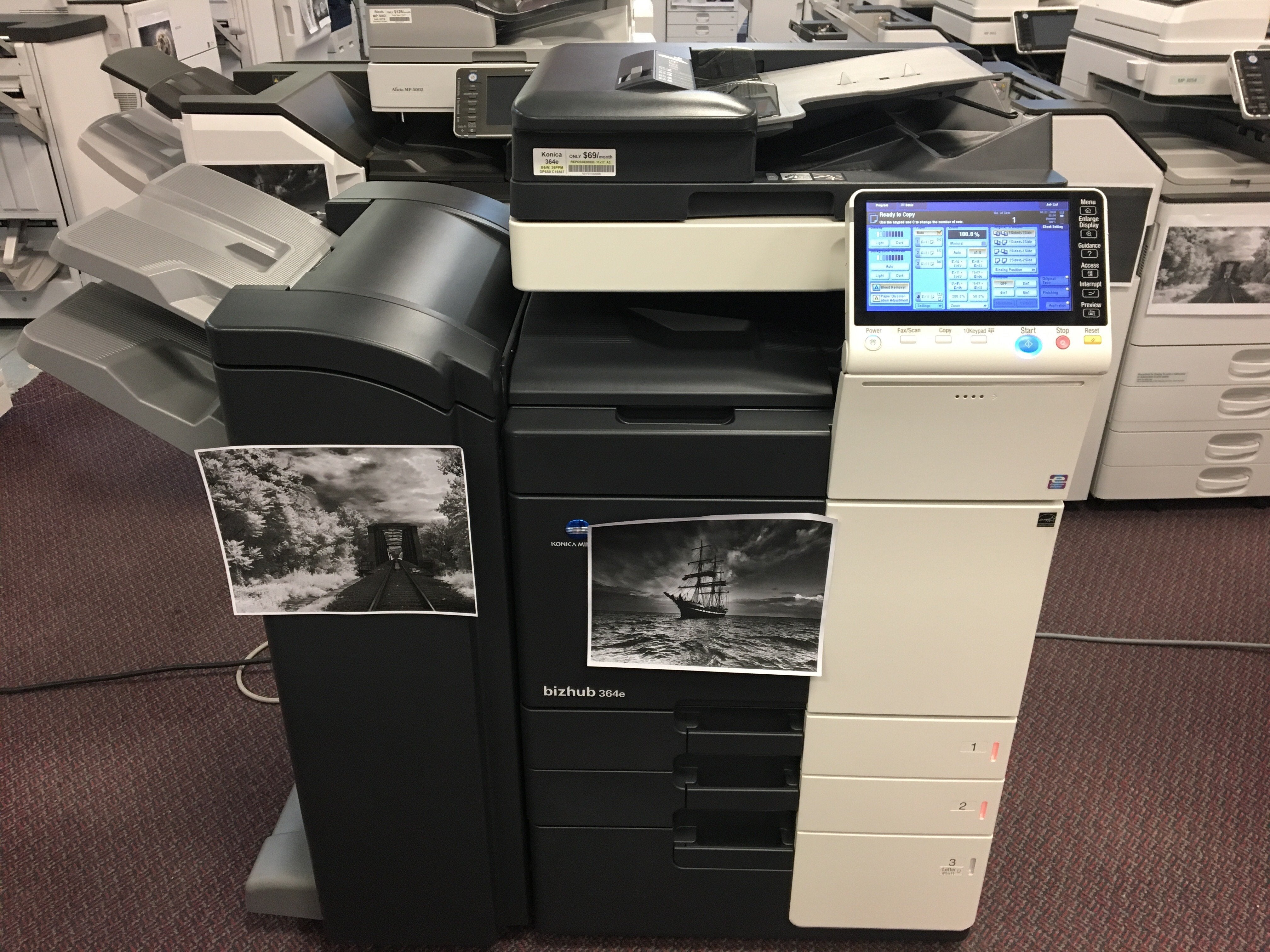 The Konica Minolta bizhub 364e offers up to 36 ppm print/copy speeds up to 160 opm color and Black and White scanning and a large touchscreen display.