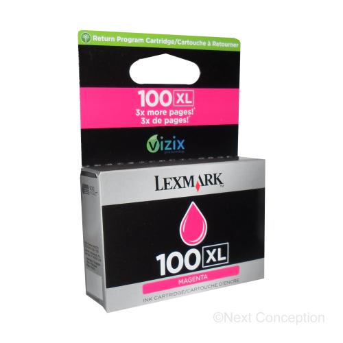 This is an original Lexmark 100XL high yield return program magenta ink cartridge that produces high-quality prints with vibrant colors. The cartridge is compatible with Genesis S815, Impact S305, Interact S605, Intuition S505, Pinnacle Pro901, and Prospect Pro205 printers, and it yields up to 600 pages. Print excellent, crisp pages ideal for both home and office use. Original Lexmark 100XL ink cartridges are engineered to consistently deliver a professional level of quality for all your printing needs.