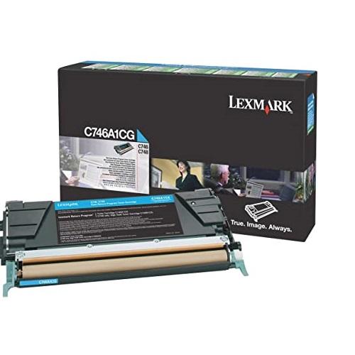 The cyan color is dark and vivid, making images clear when printed on light-colored papers, and the toner resists smearing to keep prints looking sharp. With a print yield of up to 7,000 sheets of paper, this Lexmark cyan toner cartridge provides convenience and minimizes the frequency of replacement. his Lexmark return-program toner cartridge is compatible with select Lexmark C746A1CG machines and has cyan toner, producing striking, clear prints of letters, notices and documents.Â