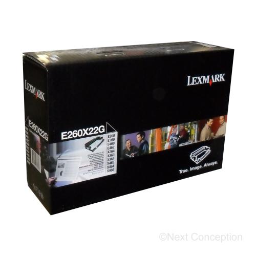Lexmark E260X22G photoconductor toner cartridges are designed specifically for your Lexmark printer. Original Lexmark E260X22G Cartridges are easy to install for printing crisp text and rich black. Designed to work the first time, every time with trusted Lexmark toner.Â