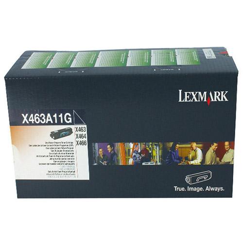 This original Lexmark X463A11G OEM toner cartridge is a genuine cartridge made by Lexmark. The goal of the original Lexmark X463A11G OEM toner cartridge is to offer the ultimate printing experience. This black toner cartridge dries almost instantly, preventing smears and smudges and keeping prints looking clean and neat every time. Yield up to 3500 pages.Â