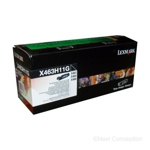 This original Lexmark X463H11G OEM toner cartridge is a genuine cartridge made by Lexmark. The goal of the original Lexmark X463H11G OEM toner cartridge is to offer the ultimate printing experience. This black toner high yield cartridge dries almost instantly, preventing smears and smudges and keeping prints looking clean and neat every time. Yield up to 9000 pages.Â