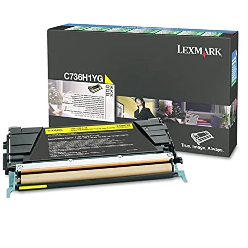 Lexmark C736H1YG high yield yellow Get high-quality, reliable results with this toner cartridge. Featuring a yield of up to 10,000 sheets, this toner cartridge is a good fit for workspaces, classrooms and small offices. This Lexmark return-program toner cartridge is compatible with select Lexmark C736H1CG machines and has yellow toner, producing striking, clear prints of letters, notices and documents. High-yield toner cartridge, up to 10000 pages.