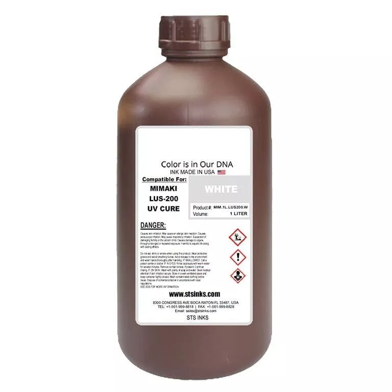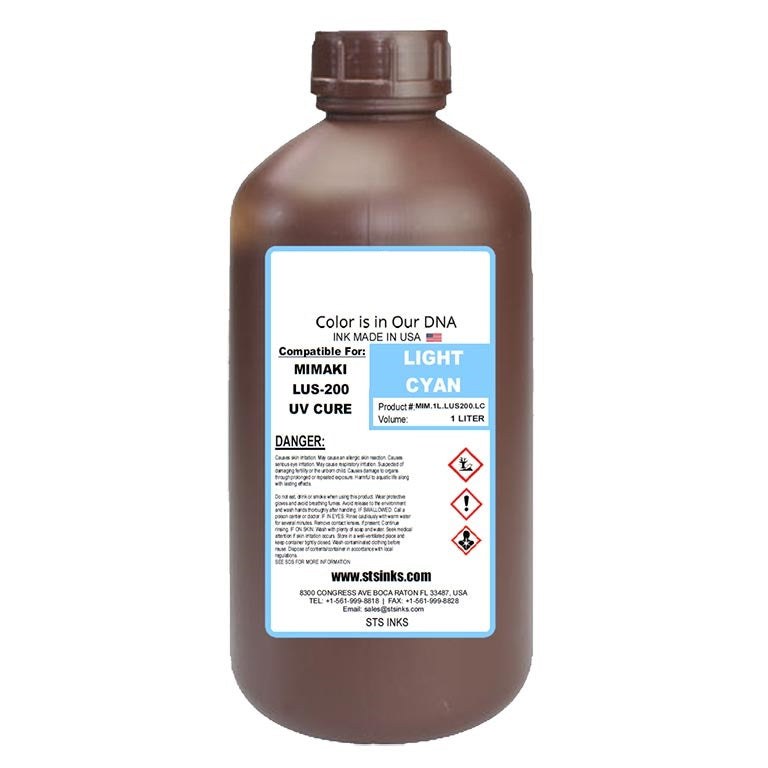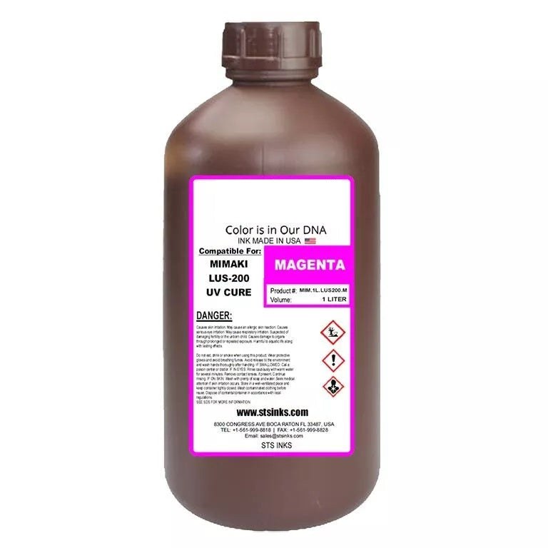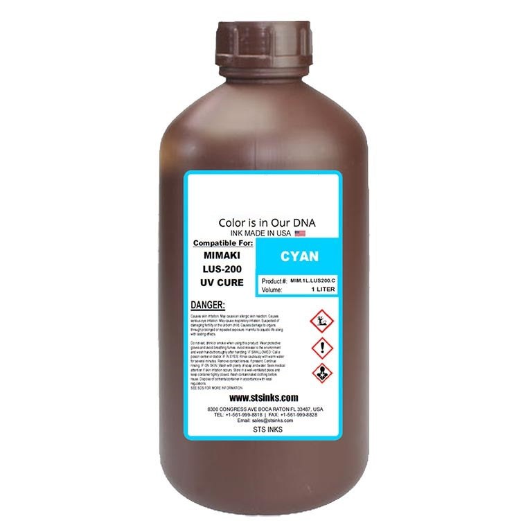 Specifically manufactured to match the performance and color properties of Mimaki’s LUS-200 UV Curable Inks. This is an ultra-premium UV Curable Ink with a stunning color gamut, performance, accurate color reproduction, and the ability to print on a wide range of media.