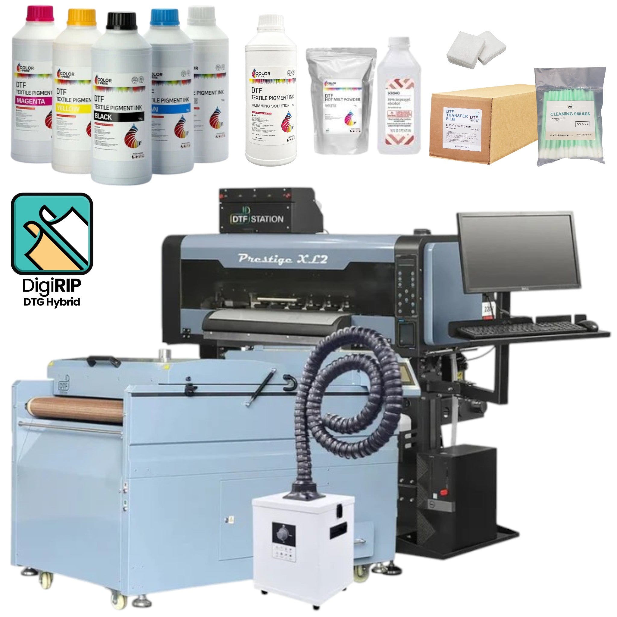 Elevate your DTF production with the powerful Prestige XL2 Bundle â a full professional system designed for high-volume, wide-format DTF printing. This bundle combines speed, precision, and air purification to deliver flawless results every time.