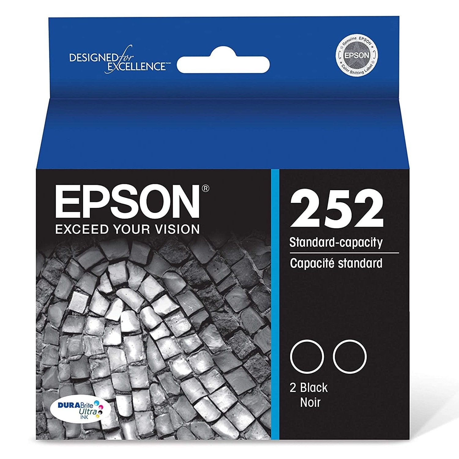 Genuine Epson OEM T252120D2 Black Standard Yield Ink cartridge delivers consistent rich, vivid professional color laser quality output you can rely on for up to 700-pages (350 pages per cartridge). Intelligently engineered as part of a complete printing system to work seamlessly with your printer to deliver laser printer quality. Â These cartridges produce superior laser quality results that withstand the test of time. offers an environmentally responsible way to dispose of cartridges.