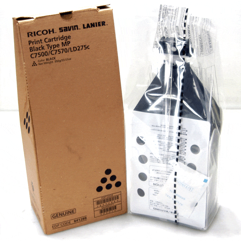 Original Ricoh Cartridge: The OEM Ricoh 841288 black laser toner cartridge is professionally designed to produce the highest quality printouts for your Ricoh laser printer. Buy this cartridge for your home, school, or office business use and enjoy this premium quality cartridge. Ricoh 841288 toner cartridges are specially designed to work with Ricoh Aficio MP C6000, C6000SP, C7500, C7500SP, Lanier LD260c, LD275c, Savin C6055, and C7570. This Ricoh 841288 black laser toner cartridge yields approx. 36,000 pages, and the Package including one Original Ricoh 841288 black toner cartridge.