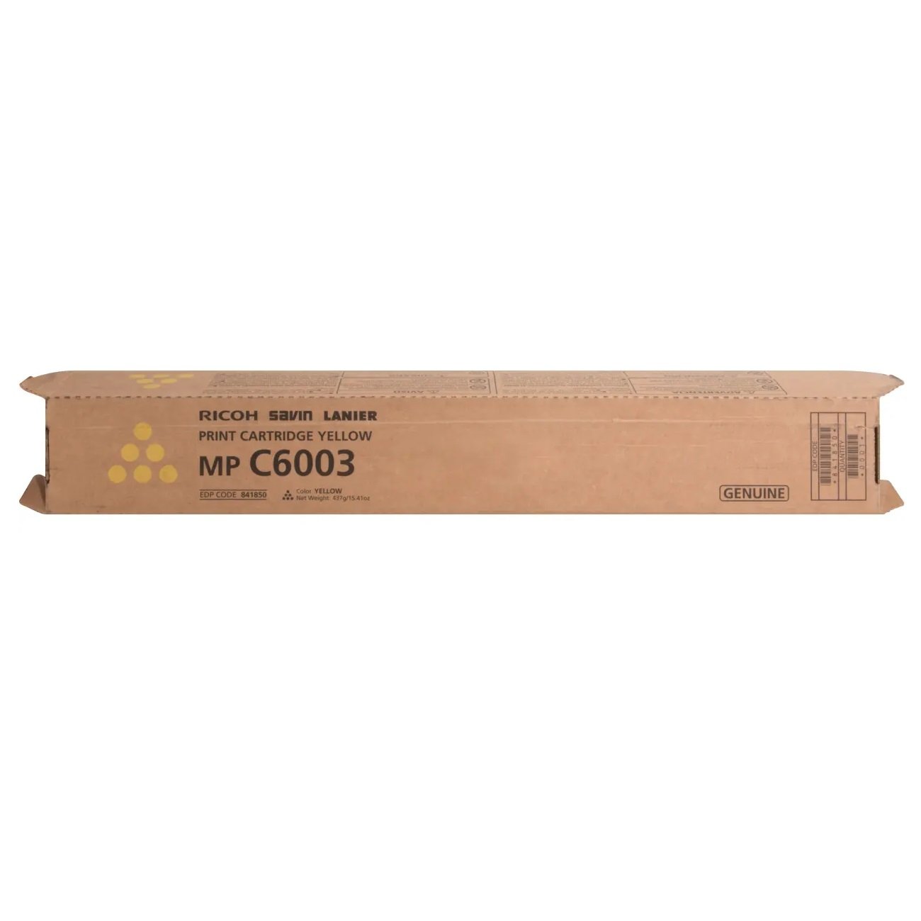 Original Ricoh MP C6003 (841850) yellow toner cartridge offers great print quality and reliable performance for fast, professional-quality color printing. The 841850 brings new toner formulation, cartridge architecture, and smart printing features to Ricoh's precision printing system. Dependable toner cartridge, easy to install and replace. Get precise performance every time with a genuine, high-quality Ricoh toner cartridge. Save money, protect your investment and get precise performance every time with a genuine, high-quality Ricoh toner cartridge. This Ricoh toner cartridge is easy to install on printers and support work is good.