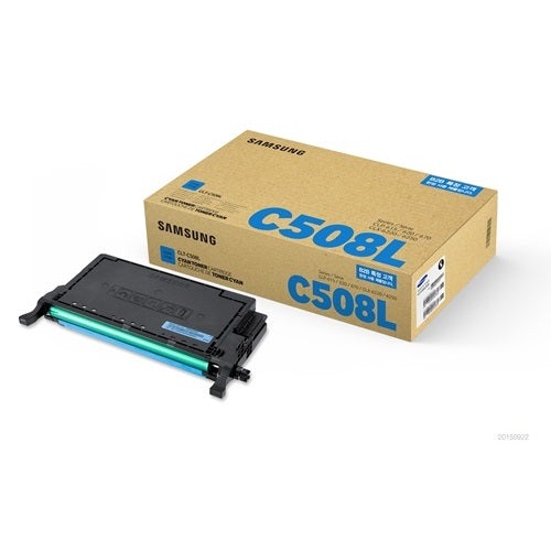 This Samsung CLT-C508L High Yield Cyan Toner Cartridge yields 4000 pages. Use this SU058AÂ high-yield cyan toner cartridge to produce high-quality prints. Between replacements, making it a great option for busy offices, large warehouses, and other businesses with high printing needs. This Samsung C508 high-yield toner cartridge features vivid cyan toner that doesn't smear. Smudge, keeping prints clean and readable for long periods of time. Exceptional results require an exceptional toner. Experience enhanced fine-line detail and superior reliability. Features an easy installation that leaves hands clean.