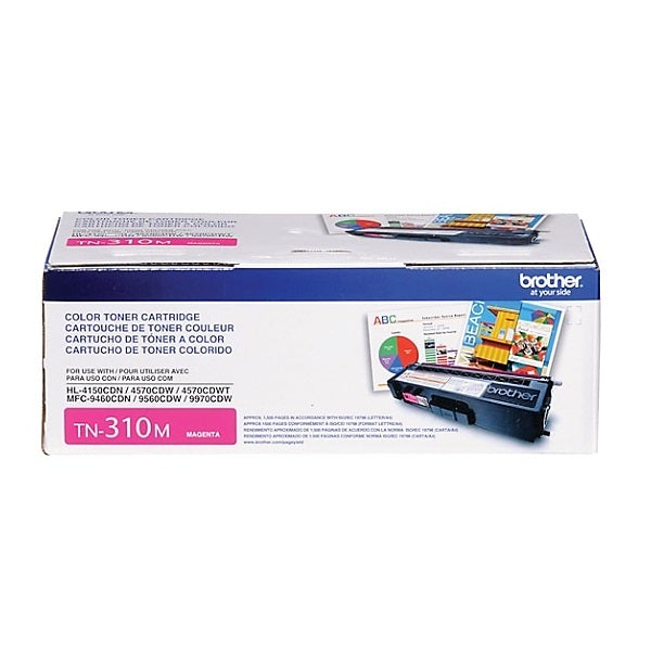 Brother TN310M original Laser toner cartridge is a professional laser-quality product. This is a fast print work a cartridge toner a print. There is so quality work a print and use for education work. This brother TN310M toner cartridge is designed to work with Brother HL-4140CN, HL-4150CDN, HL-4570CDW, HL-4570CDWT, MFC-9460CDN, MFC-9560CDW, MFC-9970CDW. This Brother TN310M cartridge is yield approx. 15,000 pages and Magenta color.