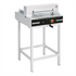 safety package: patented EASY CUT electronic blade activation bars for true two-hand operation; transparent, electronically controlled front safety guard; transparent safety cover on the rear table; main switch and safety lock with key; 24-volt controls (low voltage); patented IDEAL safety drive; automatic blade and clamp return from every position; disc brake for instant blade stop; blade changing device covers cutting edge of the blade; blade depth adjustment from outside of machine; blade and cutting stick can be changed without removing covers.
