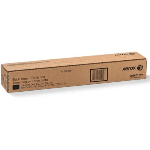 Original Xerox Cartridge: Xerox 006R01219 Black Dry Toner Cartridge is a genuine cartridge. Xerox 006R01219 Toner cartridge is designed for use with Xerox Discolor 240, 250, 242, 252, 260; WorkCentre 7755, 7765 and 7775. The cartridge is designed to provide outstanding print quality for important photos and documents. The 006R01219 toner cartridge yields approx. 30,000 pages at 5% area coverage.